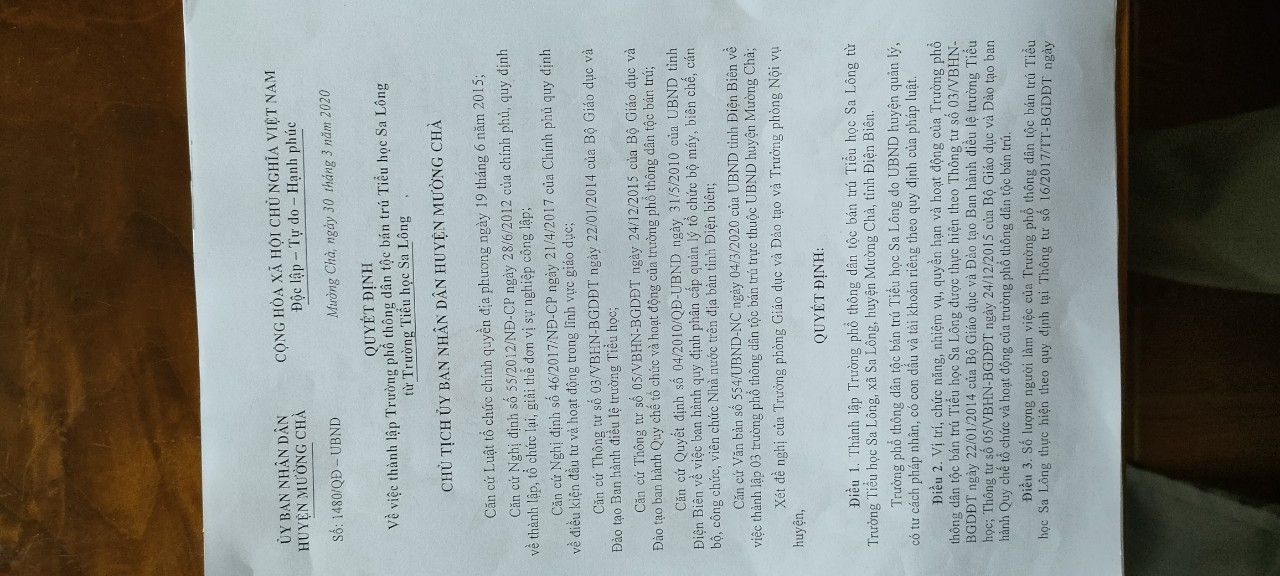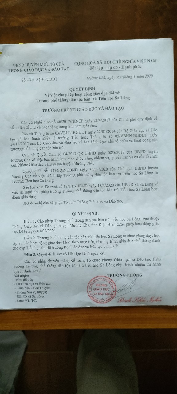 QĐ giao dự toán thu, chi ngân sách địa phương năm 2025 đối với các cơ quan. đơn vị sau sắp xếp, sát nhập và thực hiện chính quyền đại phương 2 cấp trên địa bàn xã Na Sang ( thời gian thực hiện 1/7/2025 - 31/12/2025 của trường PTDTBT TH Sa Lông)